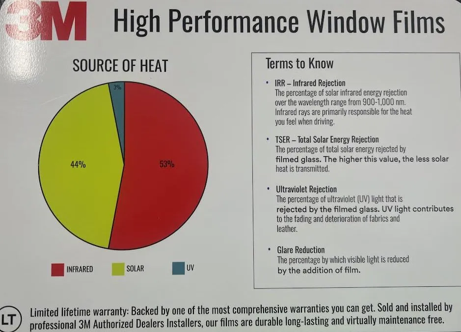 Infrared rejection (IR) refers to the percentage of solar infrared energy rejected by the tint film within the wavelength range of 900 to 1,000 nanometers. Infrared rays are the primary source of the heat you feel when driving. Tints with higher IR rejection ratings effectively block a significant portion of these rays, leading to a cooler and more comfortable interior. By selecting a tint with high IR rejection, you can reduce the heat that penetrates your vehicle, making those scorching summer days much more bearable.